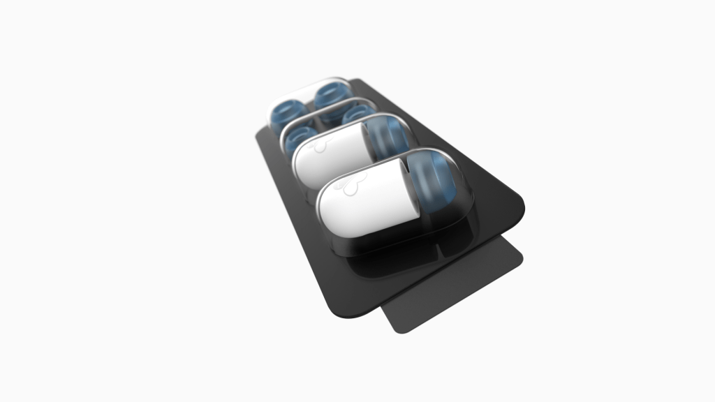 This design gives the shape and form of medicine to earbuds and the package of them, telling people listen to some music, forget bad things and have a good day.